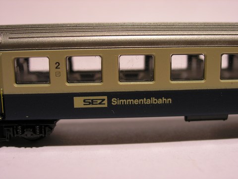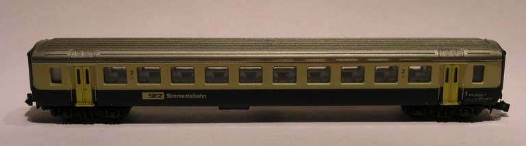 Description : wagon passagers 2ème classe bleu-crème, compagnie SEZ (Simmentalbahn), en parfait état (neuf)